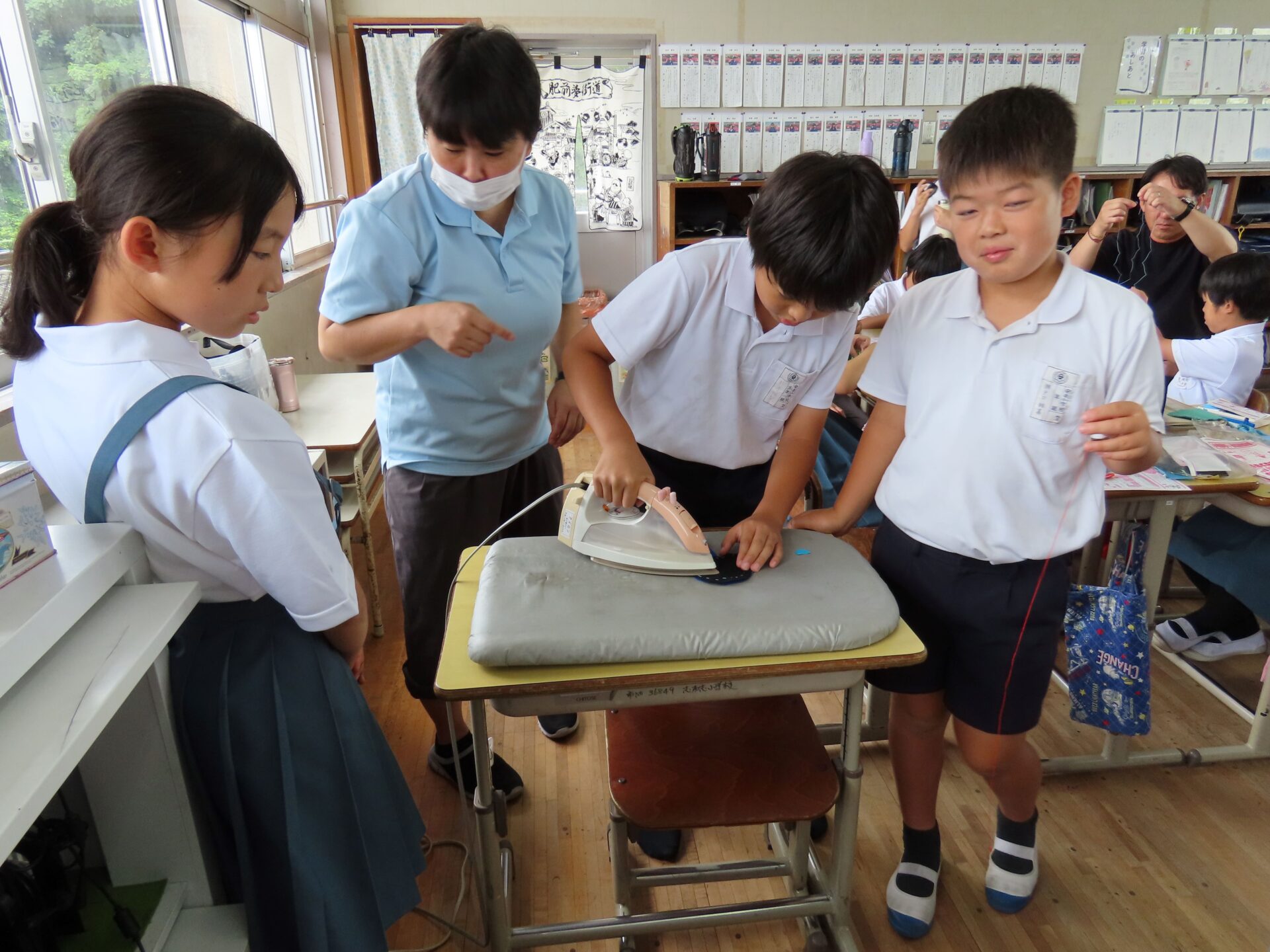 家庭科で小物づくりをした5年生。