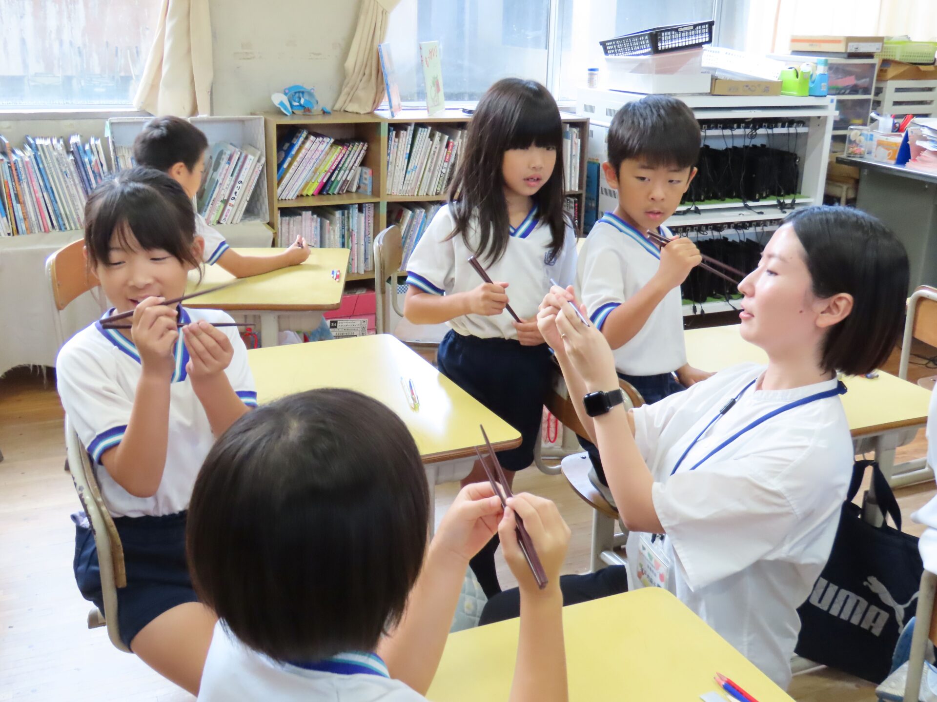 今日学んだことを忘れず,正しい姿勢とはしの持ち方で,全員で「給食の食べ方名人」を目指します!!