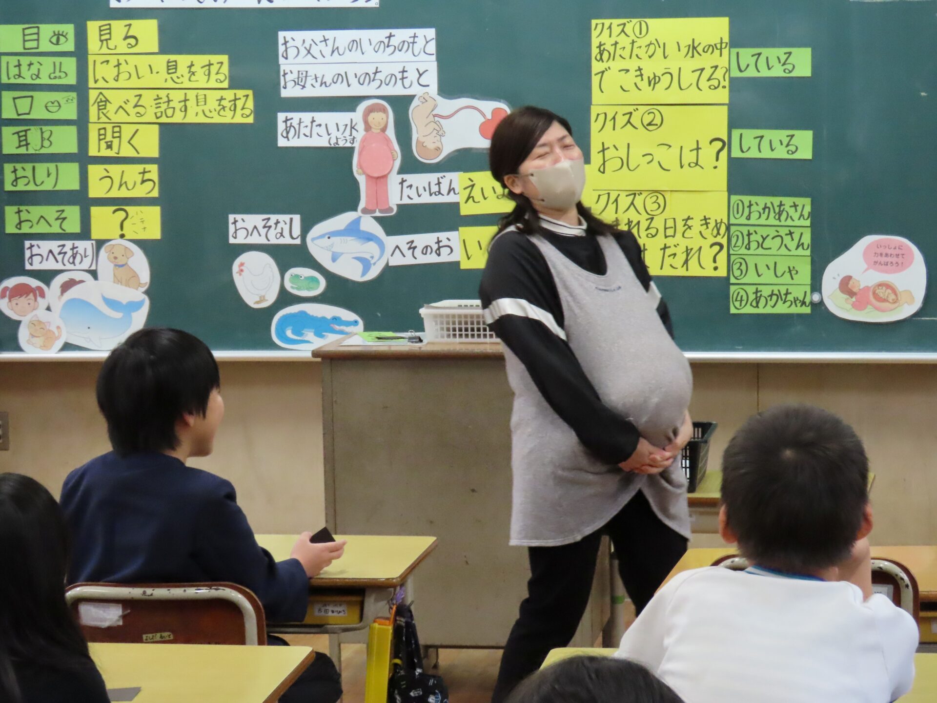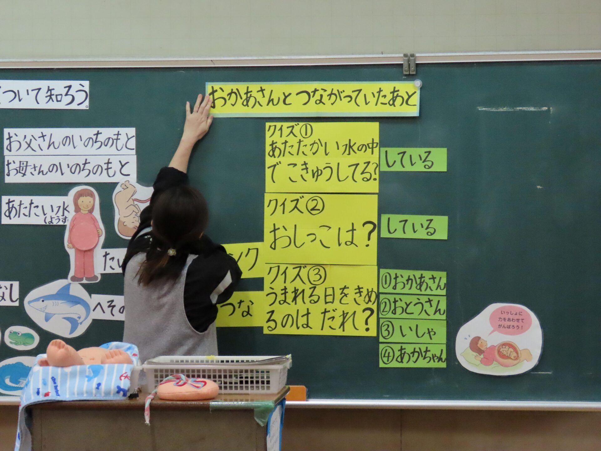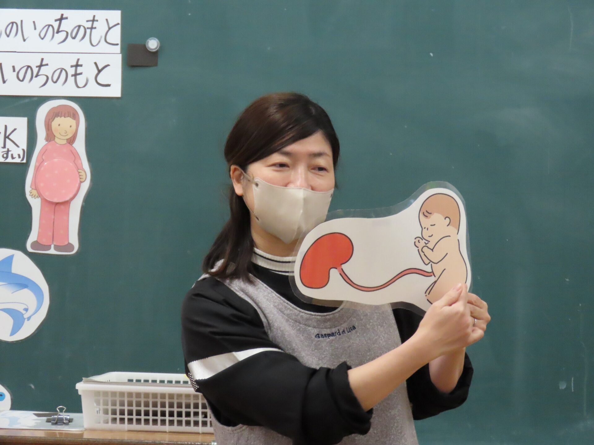 お母さんのお腹の中では、たいばん(えいようタンク)とへそのお(いのちのつな)で成長していることも知りました。