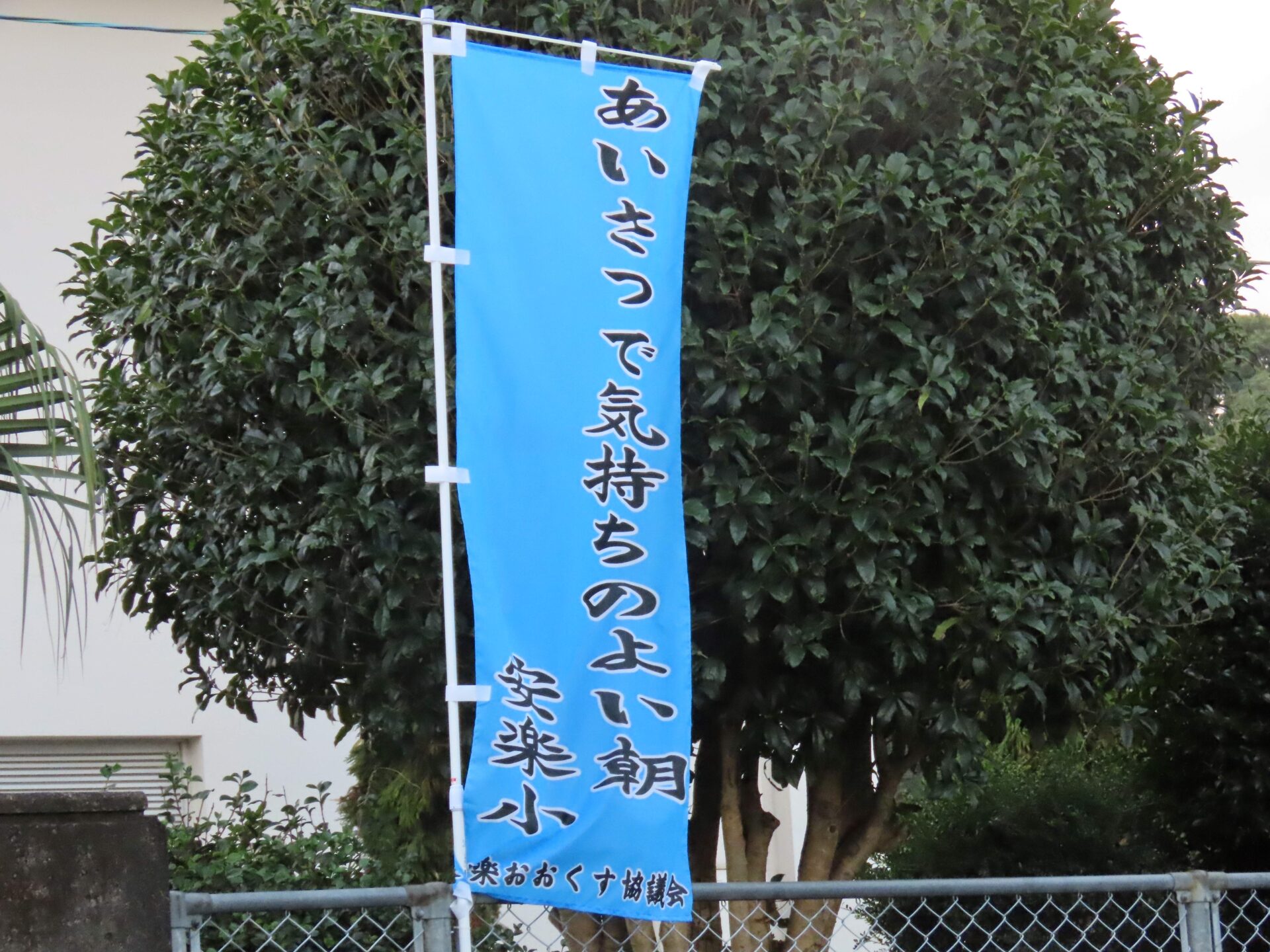 そこで,先週の土曜日に,安楽おおくす協議会に協力をいただき,のぼり旗を設置。