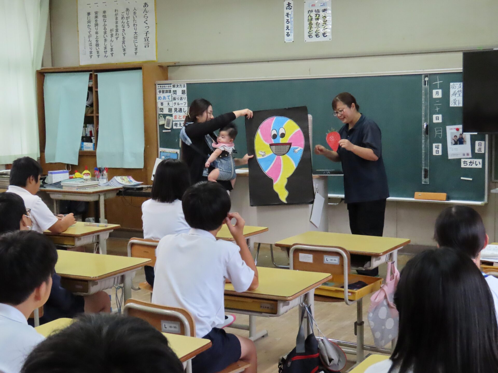 本日の2・3校時,2年生を対象に栄養教諭・城戸内麻子先生による「食に関する指導」が行われました。