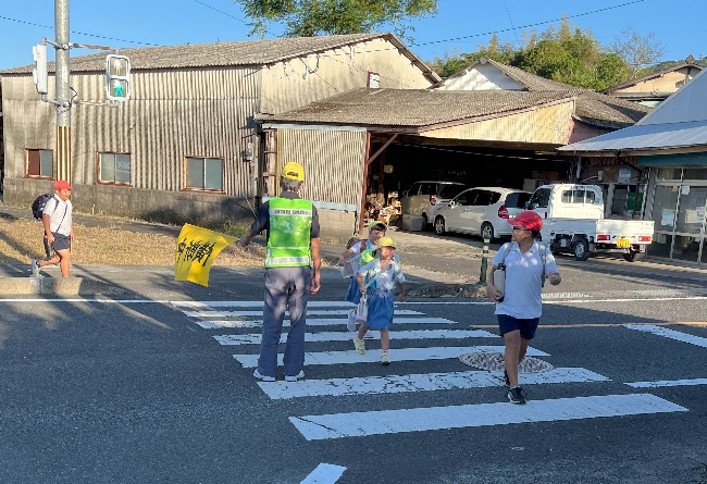 スクールガードの髙原さんが横断歩道で見守ってくださる姿に出会ったときも、