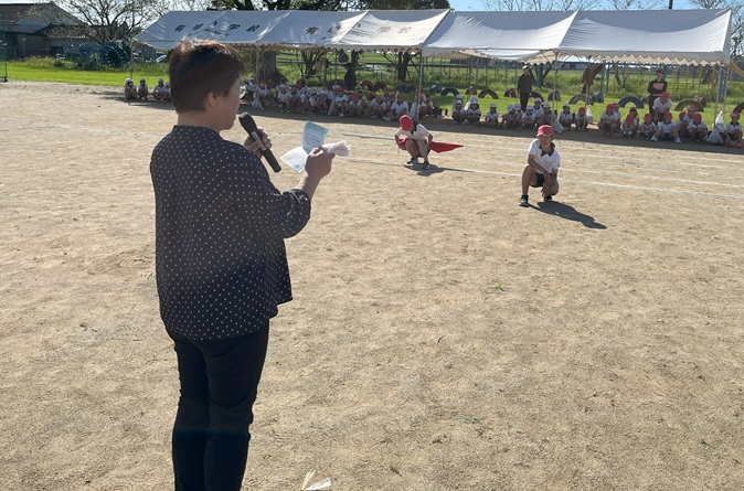 9月30日(月)付で、4月からたんぽぽ2の担任を務めていました平野満子講師が退職することになりました。全校児童が集まる機会がなかなかもてないため、9月26日(木)の全校体育のときにお別れのあいさつをしていただきました。