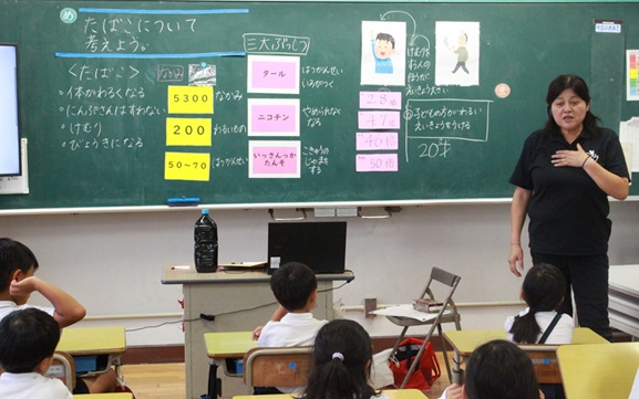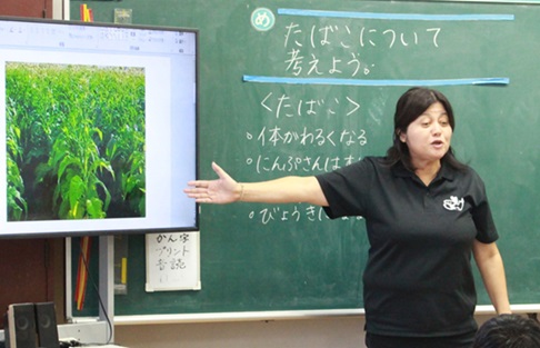 また、たばこを吸っている人よりも、たばこを吸わない人が火をつけたたばこの先端から立ち上る煙の有害物質の影響を多く受けるということにも驚いていました。これから脳や体を成長させていく子どもたちにとって、たばこは害があってもいいことがないことを学びました。