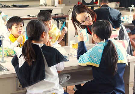 学習テーマは、3年生が「むし歯を防ごう」,4年生は「正しい歯磨きができるようになろう」です。染め出し液を使って、磨き残しに赤色を付けて、むし歯を防ぐじょうずな歯磨きを学習しました。