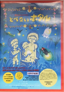 あらすじは、「羽化がうまくできずに羽が伸びずに飛べないホタルと、それを励ましたり助けたりする仲間達。飛べないホタルの身代わりになって人間に捕まってしまう仲間も。飛べないホタルはみんなに大事にされていることを知りました。捕まってしまったホタルも人間に逃がしてもらったときには、仲間達みんなが迎えに行きました。飛べないホタルも住処で、みんなの帰りを待っていました。」