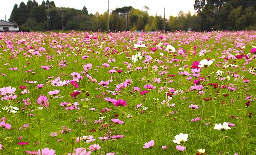 中学校の向かいには、野井倉北部環境保全協議会の野井倉北部コスモス園が見頃になっていました。