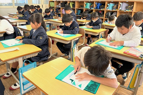 12月5日(木)、2時間目の図工の時間に2年生の子どもたちがカッターナイフを使った工作の練習をしました。