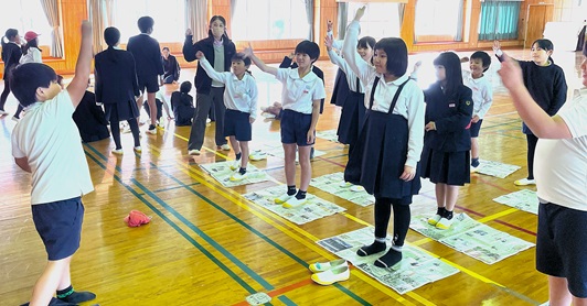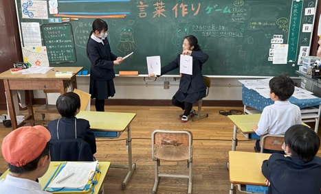 12月12日(木)の午後、6年生が中心になって、全校児童で交流を行い、児童一人ひとりが仲良く協力する態度を育て、人権意識の高揚を図るために、「みんなでなかよくふれあい活動」を行いました。