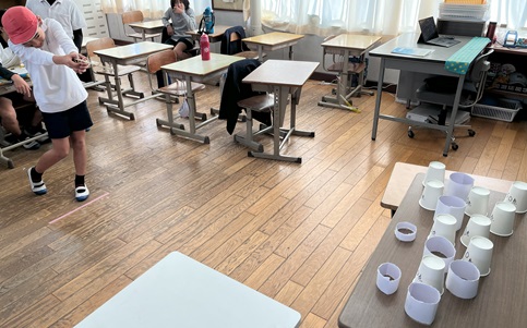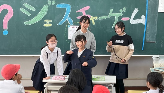 6年生が準備してくれたアトラクションは、箱の中身当てゲームやボトルフリップ、射的、ジェスチャーゲーム、言葉作りゲーム、宝探し、声出し、バランスゲーム、紙飛行機とばし、サッカー、くつとばしの全部で11種類。