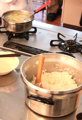 できあがった味噌汁をいただきました。大根が柔らかく煮えていて、味噌の加減もちょうどよく、たいへんおいしかったです。