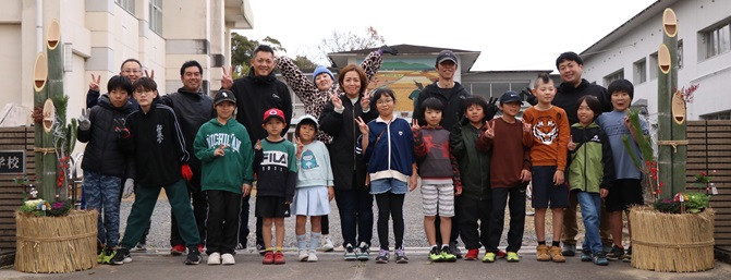12月21日(土)の午後、有明小学校おやじおふくろの会が中心になって、また、子どもたちもたくさん集まって、正門に据える門松をつくりました。