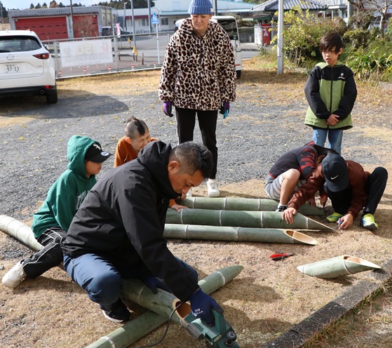 竹を斜めに切るのは、なかなかたいへんでしたが、笑顔に見える竹の切り口は、まさに「笑う門には福来たる」がぴったりです。