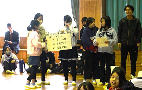 5年生は担任の内田先生に関するクイズなどを贈りました。
