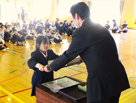和田上蒼人さんは日置市校長会会長賞を受賞しました。