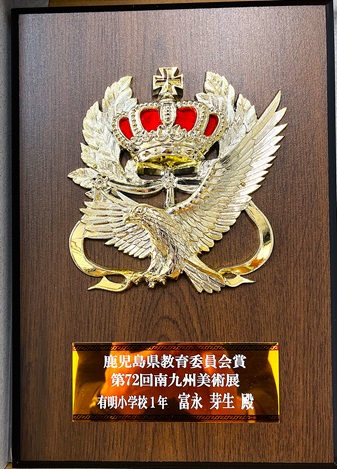 2月19日(水)、南九州美術展の表彰式を行いました。富永芽生さんは鹿児島県教育委員会賞を、