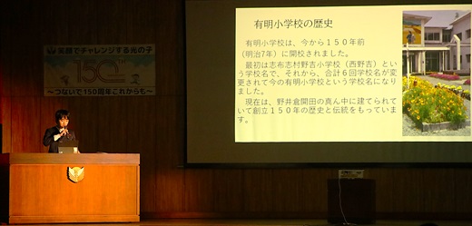 2月8日(土)、有明小学校では、創立150周年の記念行事として、創立150周年記念わくわく発表会を開催しました。進行は、広報委員会が務めました。