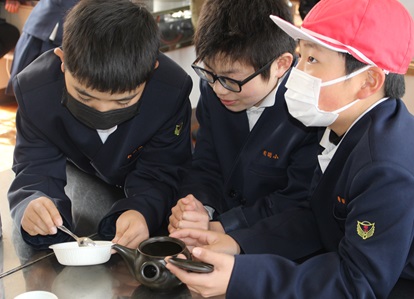 教えていただいたことを忠実に再現してお茶を入れると…、子どもたちの顔が輝いたように見えました。おいしかったのですね。