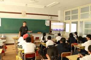 11月6日(木)、青年海外協力隊OBの塚田さんにお越しいただき、6年生対象にキャリア教育の講話をしていただきました。塚田さんには、約30年前にコスタ・リカ共和国にて農業の仕事に携わった経験を基に話をしていただきました。国の様子やスペイン語の言葉やあいさつの紹介など、国際理解教育の要素も含めながら、元気よく楽しく授業を進めていただきました。