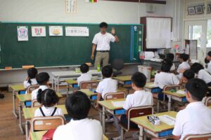 7月12日(土)の土曜授業で、「地域の先生方の話を聞こう」の授業を行いました。これは、キャリア教育の一環として昨年度から始まった学習活動です。今年度は、5名の保護者(獣医師、養鰻業、農業、保育園経営、陸上クラブ指導者)とALTのキヤシャン先生に講師を依頼し、それぞれの仕事の内容等について話をしていただきました。