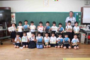 入学時の申し込んだ絵本が届き、校長から1年生の子どもたち一人一人に手渡しました。希望した絵本を手に取り、どの子もうれしそうな表情を見せていました。