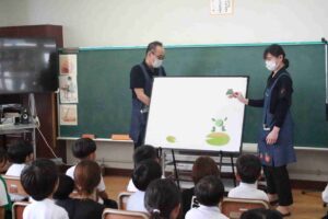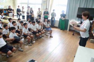 7月12日(土)の土曜授業で、「地域の先生方の話を聞こう」の授業を行いました。これは、キャリア教育の一環として昨年度から始まった学習活動です。今年度は、5名の保護者(獣医師、養鰻業、農業、保育園経営、陸上クラブ指導者)とALTのキヤシャン先生に講師を依頼し、それぞれの仕事の内容等について話をしていただきました。