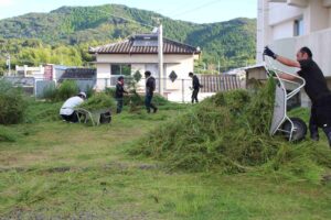 8月31日(日)の午前6時から、PTA事業部が担当する環境整備作業が行われました。正門周りや体育館周辺、中庭、みずしの丘、校庭周りを中心に作業が進められました。多くのPTA会員と5・6年児童及びその兄妹の参加もあり、学校がとても美しくなりました。そのお陰で、気持ちよく2学期をスタートできそうです。
