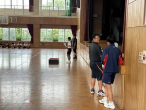 今日の5時間目も体育大会練習でした。今日は,あいにくの雨でグラウンドが使えず,体育館での練習でした。今日は開閉会式の練習を中心に行いました。保体部副部長の笛の合図で,きびきび動けていました。次回は,係の連携の確認がメインなので,外で行えるといいですね。