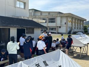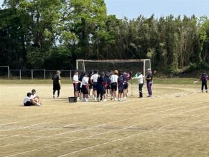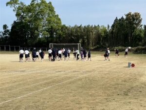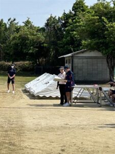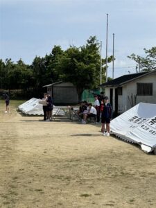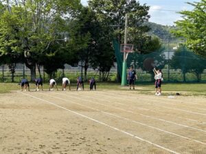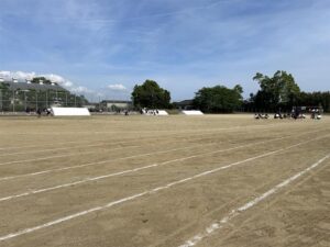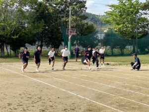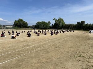 気持ちの良い晴天の中,6校時に体育大会練習が行われました。今日は,係の連携練習がメインでした。選抜100m走と1500m走で練習を行いました。どちらも距離を短くしての実施でしたが,選手も一生懸命走っていました。当日は,今日以上のデッドヒートが繰り広げられることでしょう。係の皆さんも,よろしくお願いします。また,今日,応援テントを立ててくれた皆さん,ありがとうございました。