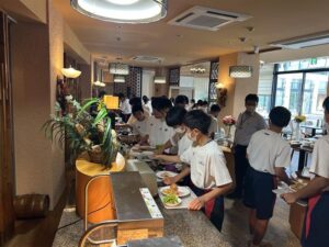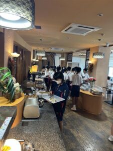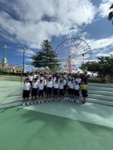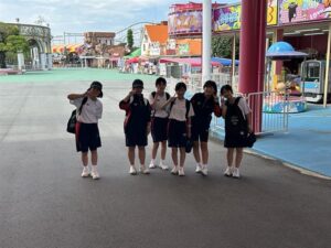 修学旅行3日目は,グリーンランドで楽しみました。訪れた団体は5団体のみで,ほぼ貸し切り状態で,ジェットコースターに3回くらい乗った生徒もいました。雨も降らず,暑かったですが,思いっきり楽しみました。天候にも恵まれ,2年生の時間を考えた行動のおかげで,スケジュール通り進んだ3日間でした。バスガイドさんや添乗員さんにも,とても素晴らしい修学旅行だったと言っていただきました。お疲れ様でした。