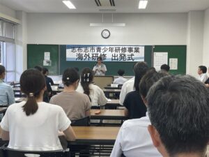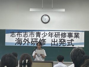 昨日,今年の夏休みに海外研修に行く生徒たちの,合同出発式が行われました。本校からも,3年生の女子が選ばれてアメリカでの研修に参加します。出発式では,アメリカで日本の文化を紹介したいなど,海外研修でどのようなことを行いたいか抱負を発表しました。充実した研修をしてきてほしいと思います。頑張って下さい!