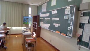今日の2時間目,1年A組で,栄養教諭の教育実習に来られているS先生が,教育実習を締めくくる研究授業を行いました。「給食の残食を減らそう!」というテーマで授業を展開していきました。1日に必要なエネルギー量を計算したり,給食センターの仕事の大変さを写真で紹介したりしながら進めていきました。1年A組の生徒たちも一生懸命考えながら取り組んでいました。慣れない授業で,大変だったかと思いますが,しっかり準備して,とてもいい授業をしてくれました。お疲れ様でした。