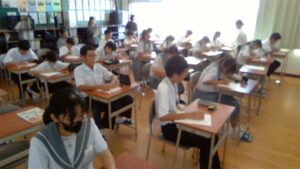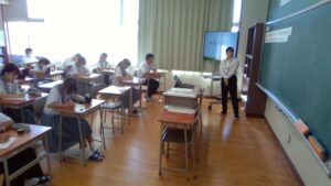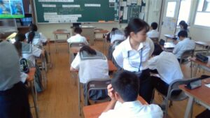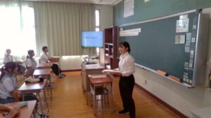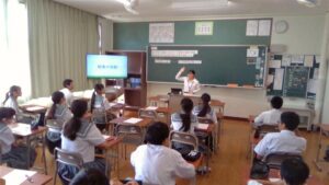 今日の2時間目,1年A組で,栄養教諭の教育実習に来られているS先生が,教育実習を締めくくる研究授業を行いました。「給食の残食を減らそう!」というテーマで授業を展開していきました。1日に必要なエネルギー量を計算したり,給食センターの仕事の大変さを写真で紹介したりしながら進めていきました。1年A組の生徒たちも一生懸命考えながら取り組んでいました。慣れない授業で,大変だったかと思いますが,しっかり準備して,とてもいい授業をしてくれました。お疲れ様でした。