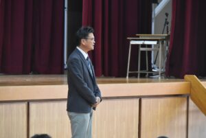 また,朝のあいさつでは,新生徒会長のI君が前に立ち,元気よくあいさつを行いました。少しずつ生徒会長らしくなってきています。