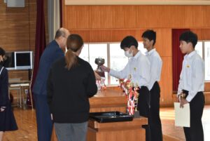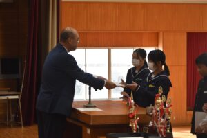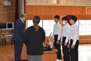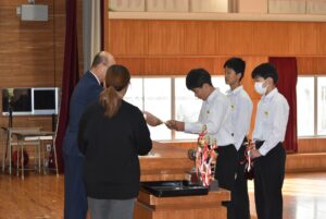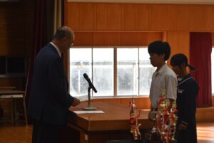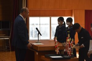 昨日の朝は,授賞伝達式がメインの全校朝会でした。作文や標語などの表彰から,地区駅伝や地区新人総体,弓道部の県大会での団体準優勝,個人優勝や3位入賞の表彰など盛りだくさんでした。有明中の生徒が,色々なところで頑張っている姿が見られて,とても嬉しい気持ちになりました。これからも,どんどん活躍していきましょう!