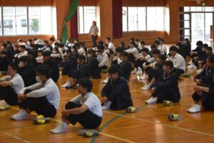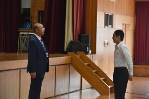 また,朝のあいさつでは,新生徒会長のI君が前に立ち,元気よくあいさつを行いました。少しずつ生徒会長らしくなってきています。
