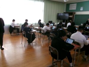 今日の2校時と3校時を利用して,鹿児島学力・学習状況調査のプレ調査と学力状況調査を行いました。タブレットを使って答えるCBTとなっています。生徒はタブレットは使い慣れているので,迷うことなく答えていました。本番では,自分が納得するような結果を出してくれることを願っています