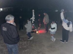 観測が終わった後,青少年館に入って,ぜんざいをいただき,暖まりました。色々と準備してくださったO教頭先生,有明コミュニティの役員の皆様,ありがとうございました。とても楽しい観察会になりました。