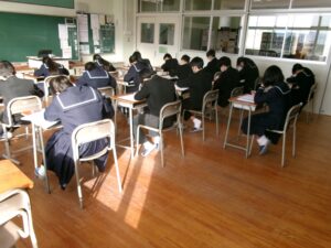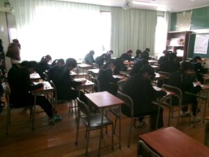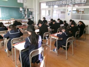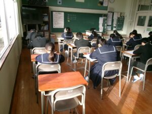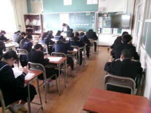 今日から,後期末試験がスタートしました。1時間目は,1年生が数学,2年生が社会,3年生が英語でした。あおぞら学級・はるかぜ学級の生徒も含めて,どの学年も一生懸命試験問題に取り組んでいました。今週の金曜日まで続きます。明日は建国記念の日で休みなので,テスト勉強を頑張りましょう!