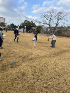 昨日の午前中,雨も上がった絶好のコンディションの下,通山校区コミュニティ協議会グラウンドゴルフ大会が開催されました。小学生から80歳~90歳ほどの高齢の方,技能研修生の方々まで総勢100名近くの方が集まり,グラウンドゴルフで盛り上がりました。経験者の方々は「さすが!」というプレーが随所に見られ,グラウンドゴルフの奥の深さを知ることができました。暑い中でのプレーとなりましたが,会話が弾みながらの楽しい時間となりました。準備等ご尽力いただいた,通山コミュニティ協議会健康福祉部の皆様,ありがとうございました。お疲れ様でした。