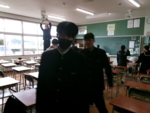 一方,進路の決まった3年生は,学校に残って教室や廊下,靴箱,トイレの掃除を一生懸命頑張っていました。自分たちが過ごした場所をきれいにすることは大事なことです。「立つ鳥跡を濁さず」ですね!
