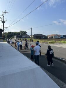 昨日の午前中,通山小学校において,令和7年度とおリンピック<<防災フェスタ>>が行われ,多くの住民で防災についての意識を高めました。開会行事に続いて,まず最初に合同避難訓練を行いました。大きな地震が来たことを想定して,津波から逃げるために,学校から中島坂を登って,近くの高台まで歩いて避難しました。子供からお年寄りの方まで,多くの方が避難しました。
