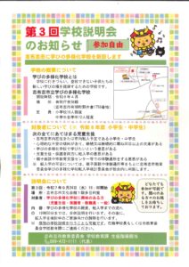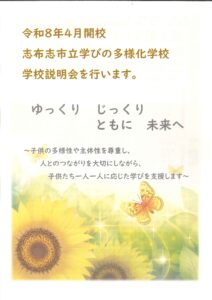 今朝の南日本新聞に,有明に「学びの多様化学校」という見出しで,記事が出ていました。登校できない児童生徒のために開かれる,小中生対象の公立校の開設は,県内初とのことです。令和8年の4月,志布志市役所有明庁舎別館に開校予定です。このことに関して,9月24日の午後7時から,志布志文化会館1階多目的室にて説明会が開催されます。また,個別の学校説明を希望される方は,在籍する学校の校長に連絡をするか,志布志市教育委員会学校教育課(099-472-1111)までご連絡ください。