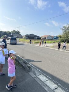 昨日の午前中,通山小学校において,令和7年度とおリンピック<<防災フェスタ>>が行われ,多くの住民で防災についての意識を高めました。開会行事に続いて,まず最初に合同避難訓練を行いました。大きな地震が来たことを想定して,津波から逃げるために,学校から中島坂を登って,近くの高台まで歩いて避難しました。子供からお年寄りの方まで,多くの方が避難しました。