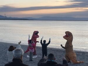 あいにく雲の影響で、初日の出は予定より20分ほど遅れての登場となりましたが、待ちわびた黄金色の光が差し込むと、参加者のみなさまはそれぞれの願いを込めて静かに手を合わせていらっしゃいました。