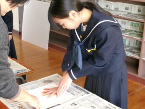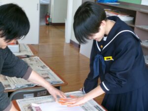 今日の6校時,2年生は立志式に向けて,色紙に手形を押す作業をしました。この後,座右の銘を書き,なぜその言葉にしたかを立志式で発表します。思いのこもった色紙ができあがることでしょう。2月4日の立志式が楽しみですね。