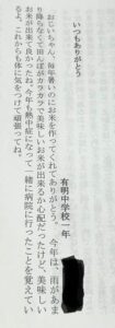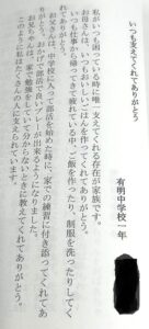 このほど完成した,「志の言の葉(第5集)~大切な人に伝えたい私の思い~」が,市教育委員会より届きました。本校からも,10名の生徒の作品が掲載されました。個人情報保護の観点から,名前の掲載は差し控えさせていただきますが,作品をご覧いただければと思います。心のこもった文章が掲載されています。