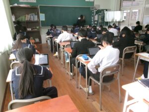 昨日に引き続き,2年生は鹿児島学力・学習状況調査の2日目が行われています。今日は,社会・英語・数学の3教科が行われます。みんな真剣な表情でタブレットに向かっていました。最後の最後まで集中して取り組んでほしいです。頑張って下さい!