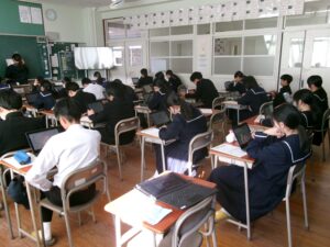 先週行われた1年生に続いて,今日から2年生で鹿児島学力・学習状況調査が始まりました。今日は,理科と国語が行われました。開始前は,アクセスが集中したためか,サーバーにつながらず心配しましたが,開始時刻直前につながり,問題なく実施することができました。調査は明日までです。最後まで諦めず,力を発揮してほしいと思います。