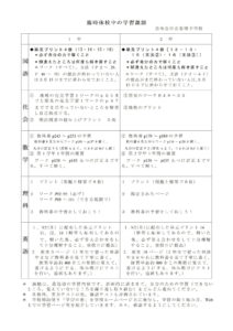 また,学習課題についても一覧表を掲載いたします。1,2年生は休校後に,実力テストも計画されていますので,ご家庭でもご指導いただきますようお願いいたします。